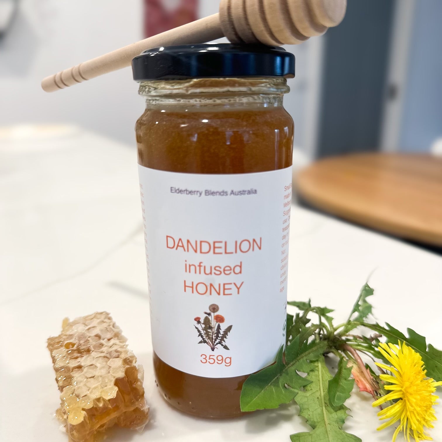 Unit price perDiscover the magic of honey and Dandelion. At Elderberry Blends Australia we have slowly infused organic dandelion root and leaves, into our honey, slowly over months using the power of the sun and time.